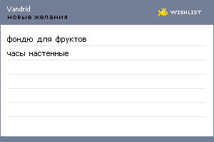 Виджеты показывают последние добавления в вишлист. Вы можете разместить (скопировать и вставить HTML-код) виджет своего вишлиста на своем сайте или в блоге. Также вы можете взять виджеты друзей и разместить их на своей стартовой странице. Выберите по вкусу.