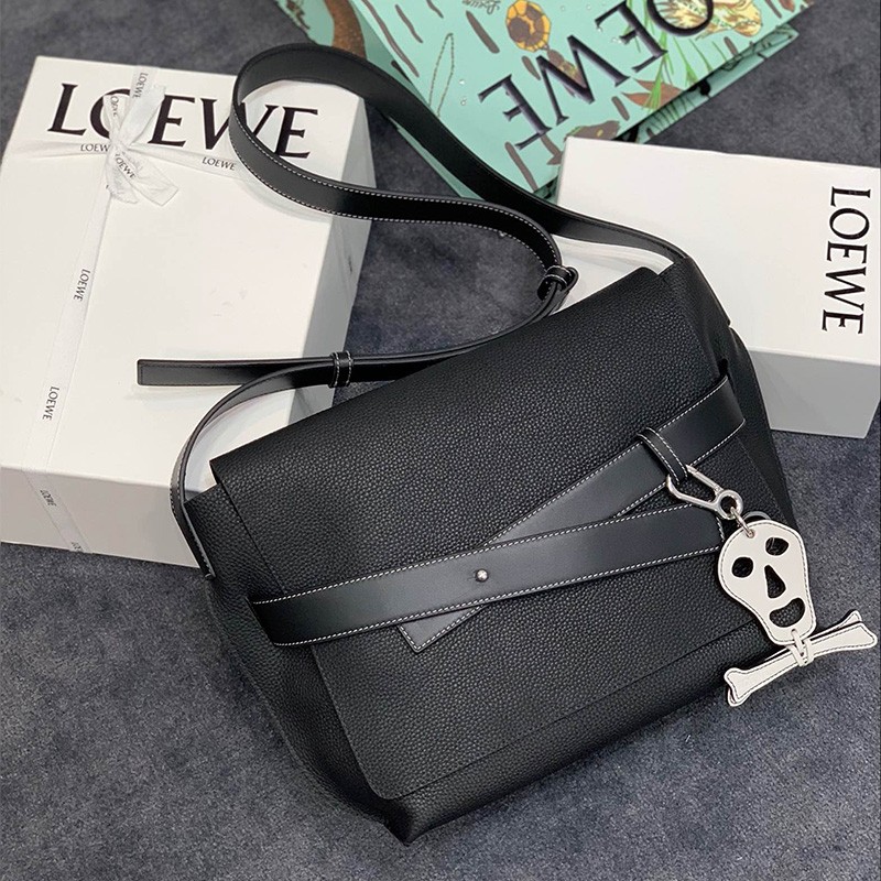 Loewe Small Strap Messenger Grained Calfskin In Black