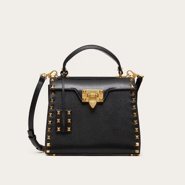 Valentino Garavani Small Rockstud Alcove Grainy Calfskin Handbag Black