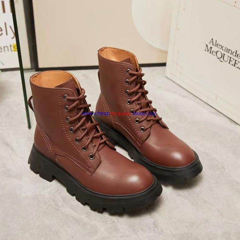 Alexander Mcqueen Wander Boots with Shiny Calf Leather Brown