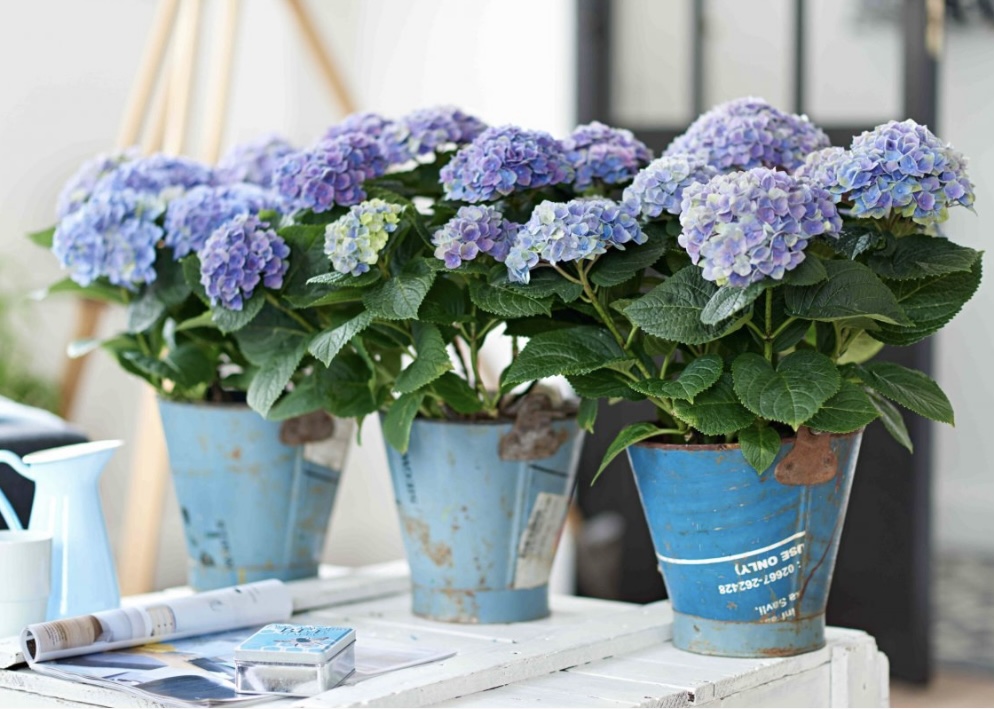 Гортензия в горшке красивых цветов.