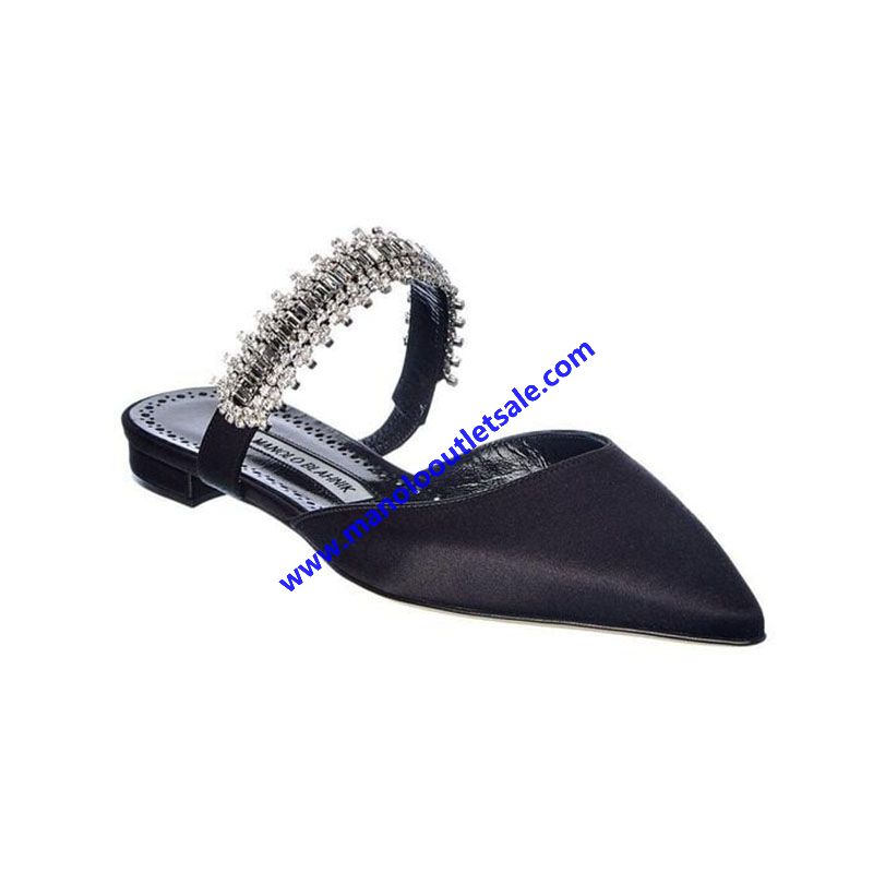 Manolo Blahnik Lutara Flats Satin With Crystal Embellished Black