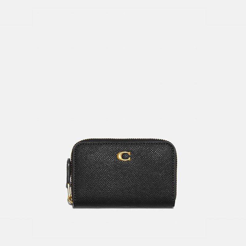 Coach Small Zip Around Card Case in Crossgrain Leather Black