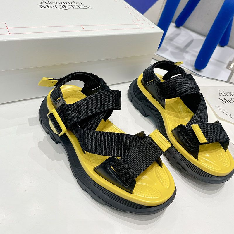 Alexander Mcqueen Tread Sandals Women Rubber with Fabric Strap Black/Yellow