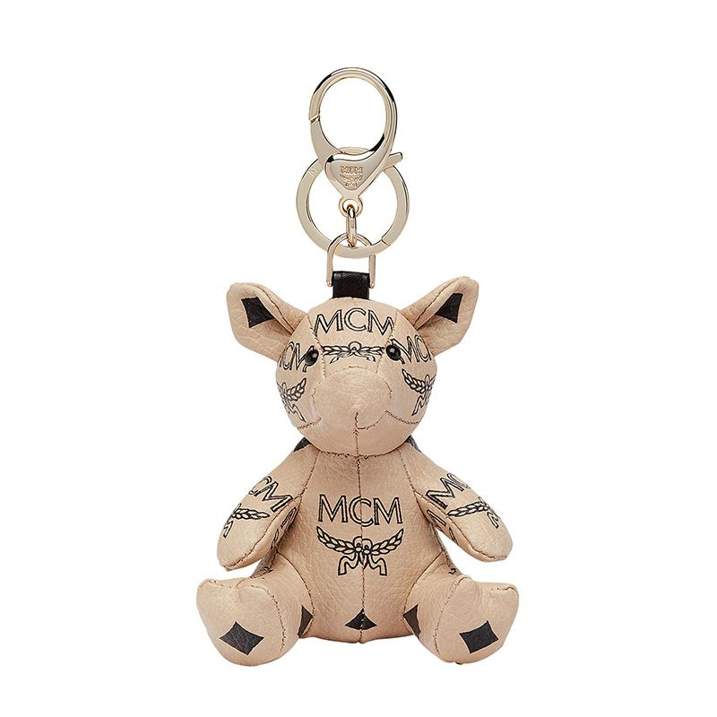 MCM Zoo Pig Charm In Visetos Beige