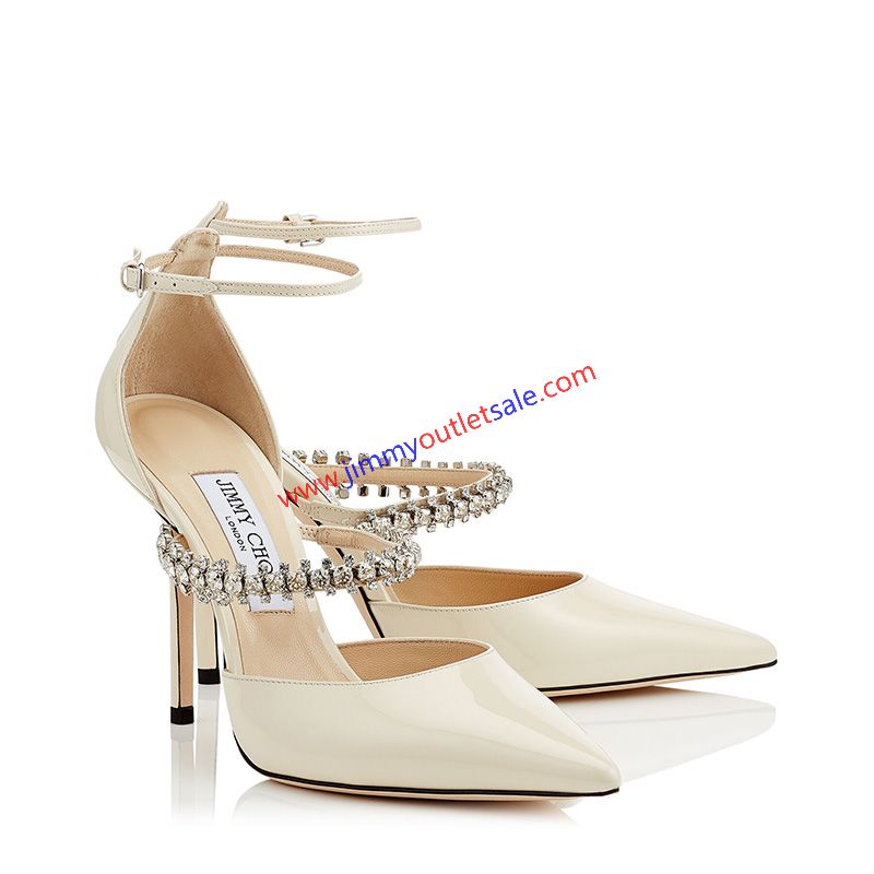 Jimmy Choo Bobbie 100 Pumps Women Patent Leather With Crystal Strap Beige