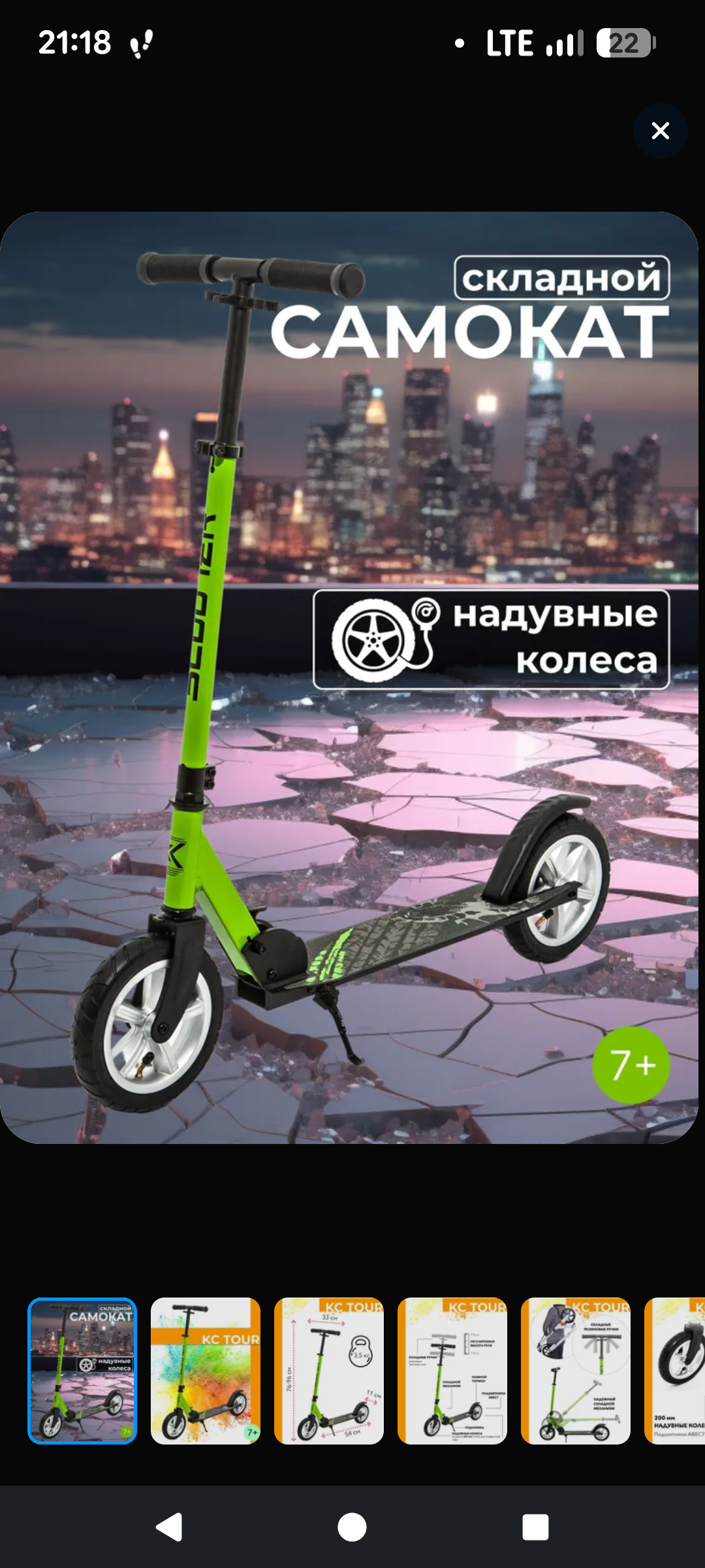 Самокат механический складной с надувными колёсами