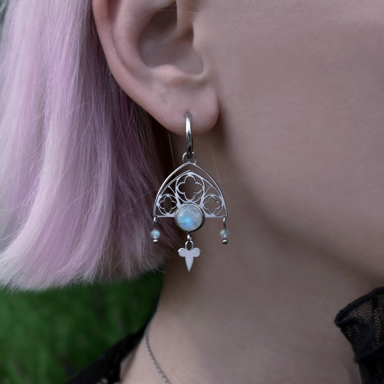 Серьги "Готический Кокошник" с подвесами с лунным камнем