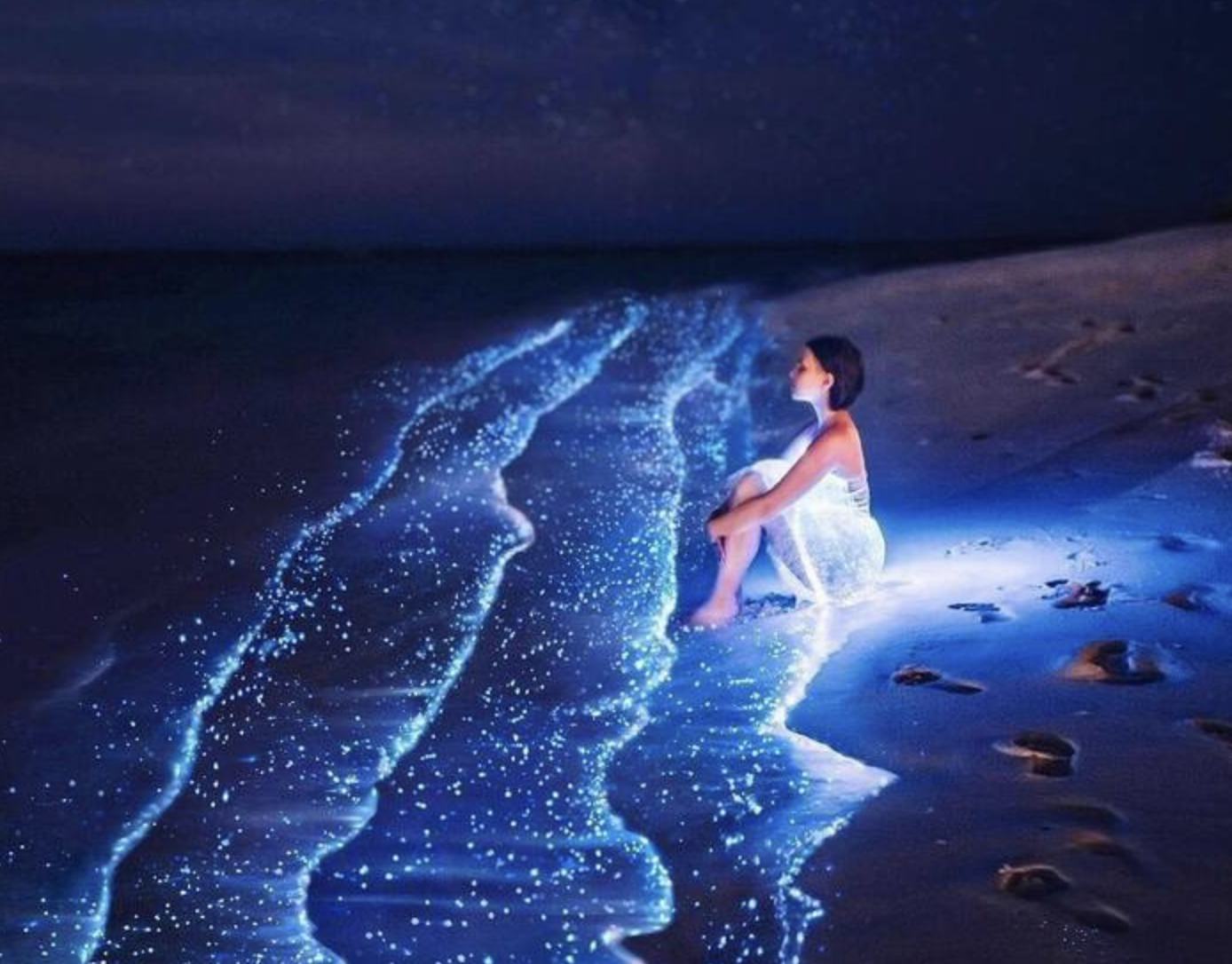 В определённое время года береговая линия сверкает ярким синим светом, создавая волшебное ночное зрелище.