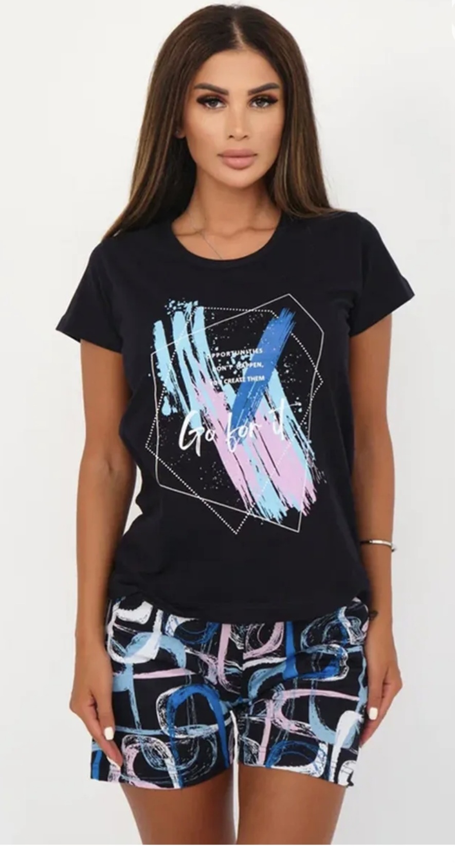 2025-11-25 18:10 Шорты и футболка с коротким руковом. Размер 50. Материал хлопок. Цвет любой не очень яркий, кроме желтого. Рисунок любой, кроме леопарда, полосок, гороха, мелких цветочков и подобного