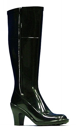 высокие чёрные резиновые сапоги на каблуке и молнии