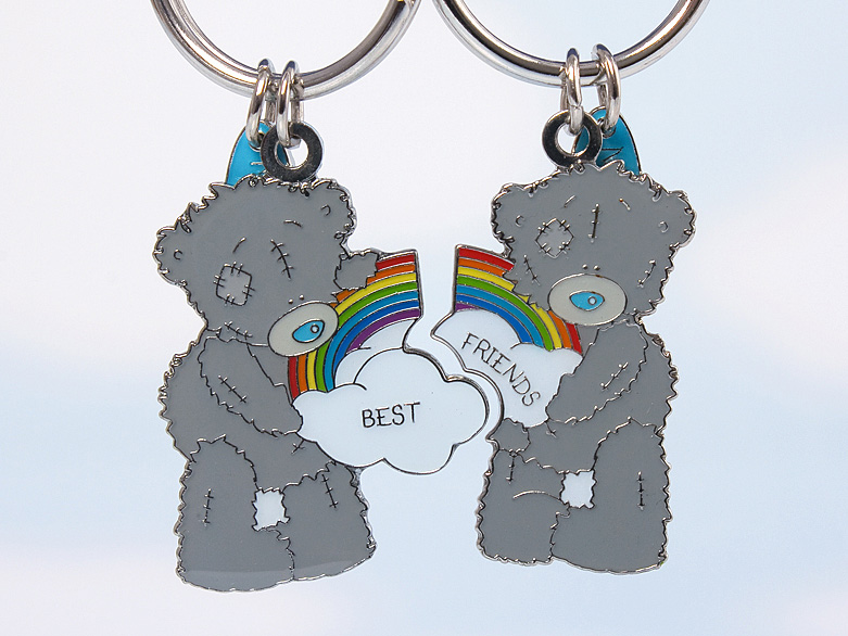 2010-12-04 23:14 One for you, one for a friend! These gorgeous keyrings feature two Tatty Teddy bears holding a rainbow. One keyring says 'best,' the other 'friends.'