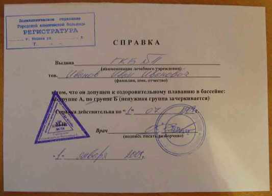 вишлист: Marina_ch / Мед.справка в бассейн