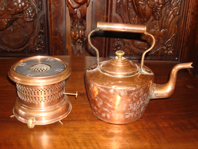 Медный чайник на подставке