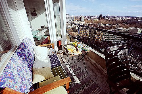 диван и столик на балконе