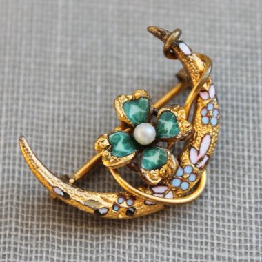 вишлист: Reverie / Victorian Gold and Enamel Clover and Crescent Honeymoon Brooch