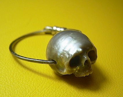 Серёжки-висюльки с жемчужными черепами от SHINJI NAKABA