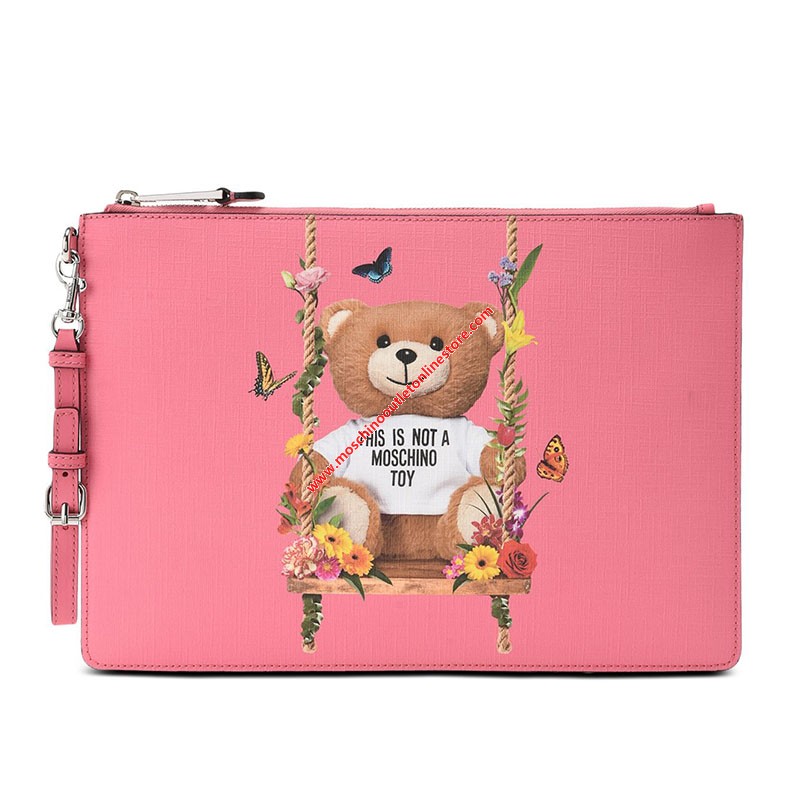 Moschino Botanical Bear Women Leather Clutch Pink