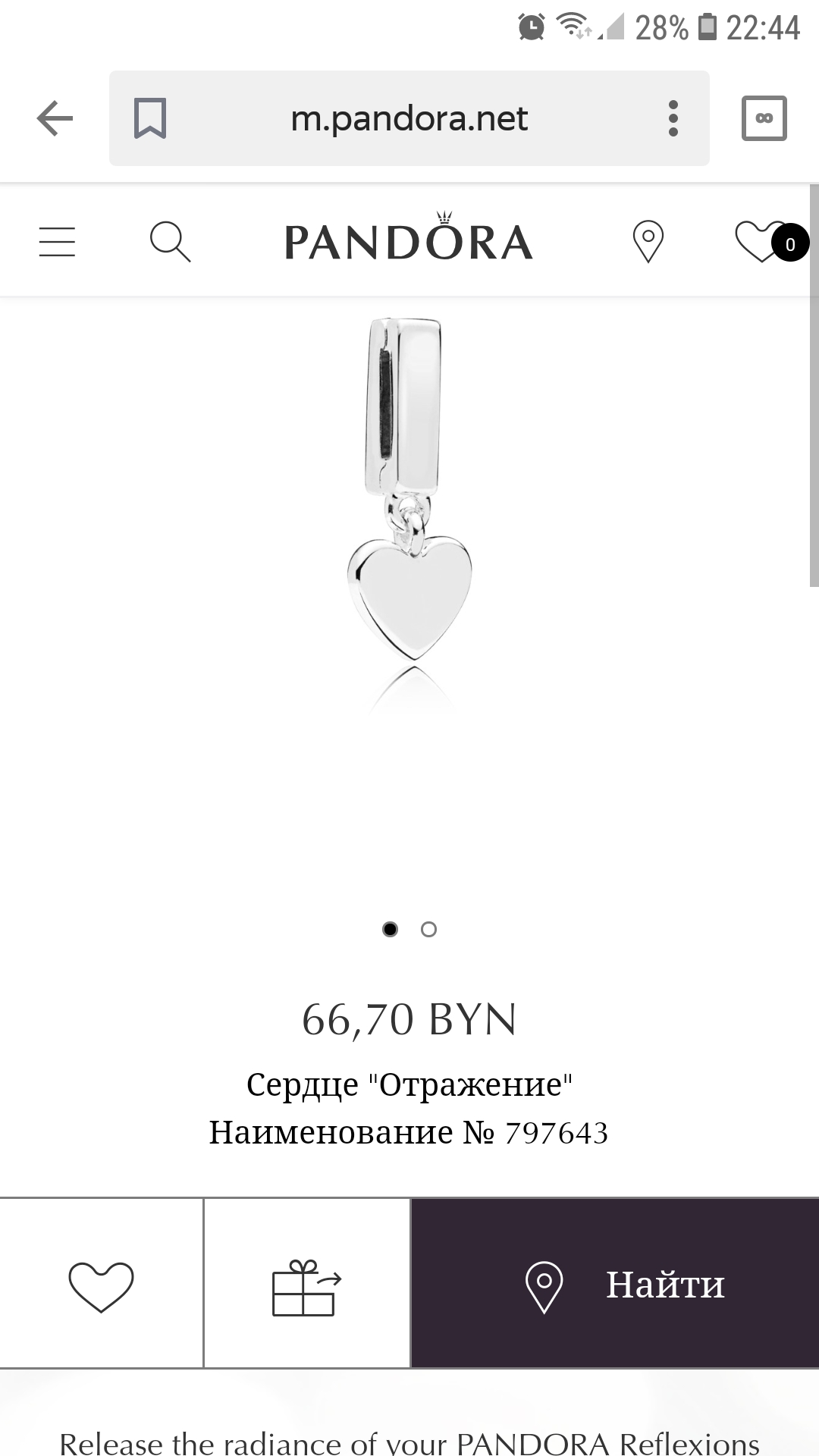 вишлист: Shumanya007 / Подвеска для браслета Пандора "Отражение"
