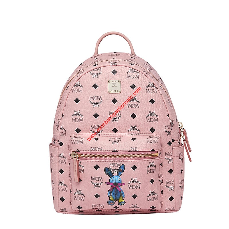 MCM Small Stark Rabbit Backpack In Light Pink