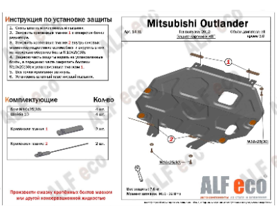 Описание поставщикаALF.14.31 st Защита картера и КПП Mitsubishi Outlander all 2012-