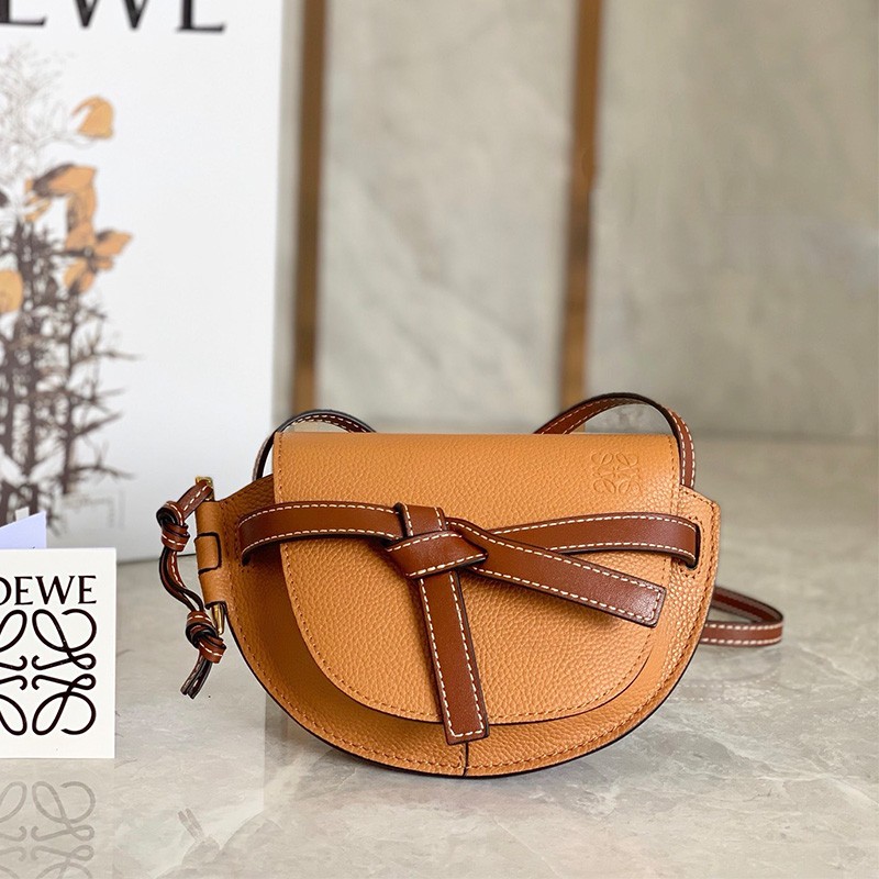 Loewe Mini Gate Bag Grained Calfskin In Camel